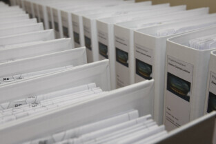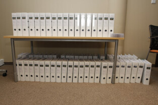 W siedzibie spółki BIEG 2012 w Gdańsku odbyło się uroczyste przekazanie dokumentacji pod pozwolenie na budowę stadionu Baltic Arena. Dokumenty te trafią teraz do Urzędu Wojewódzkiego w celu wydania pozwolenia na budowę. Nz. zgromadzona dokumentacja.