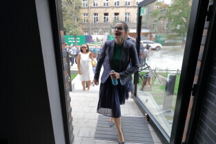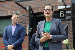 Gdańsk. Uroczystości przekazania do użytku budynku mieszkalnego przy ul. Prof. Kieturakisa 6 na Dolnym Mieście. Nz. Prezydent Gdańska Aleksandra Dulkiewicz.