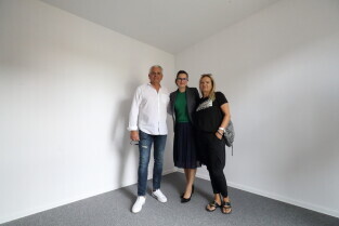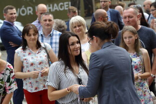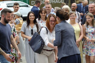 Gdańsk. Uroczystości przekazania do użytku budynku mieszkalnego przy ul. Prof. Kieturakisa 6 na Dolnym Mieście. Nz. Prezydent Gdańska Aleksandra Dulkiewicz i Wiceprezydent Gdańska Piotr Grzelak.
