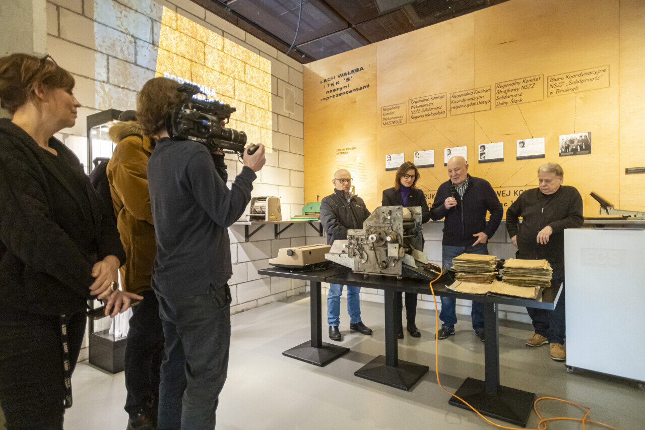 Gdańsk. w Europejskim Centrum Solidarności odbyło się przekazanie maszyny offsetowej przez marszałka Bogdana Borusewicza, posła Jerzego Borowczaka i konstruktora Ryszarda Pusza. W uroczystości wzięła również udział Magdalena Mistat, p.o. dyrektor ECS.