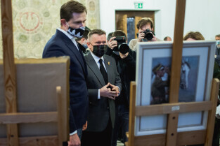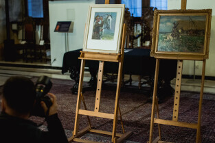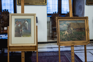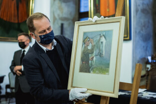 Gdańsk, Lokalizacja: Ratusz Głównego Miasta. Uroczyste przekazanie do zbiorów Muzeum Gdańska dwóch obrazów Wojciecha Kossaka