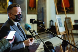 Gdańsk, Lokalizacja: Ratusz Głównego Miasta. Uroczyste przekazanie do zbiorów Muzeum Gdańska dwóch obrazów Wojciecha Kossaka. Nz. zastępca prezydent Gdańska Piotr Grzelak