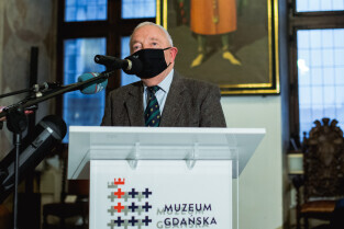 Gdańsk, Lokalizacja: Ratusz Głównego Miasta. Uroczyste przekazanie do zbiorów Muzeum Gdańska dwóch obrazów Wojciecha Kossaka. Nz. Bogdan Radys