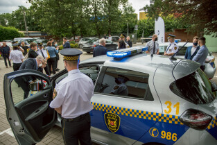 Gdańsk, ul. Biała, Referat Ekologiczny Straży Miejskiej. Przekazanie pojazdów elektrycznych dla Straży Miejskiej