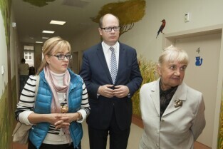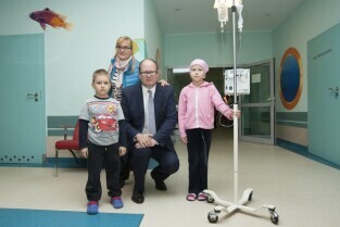Prezydent Gdańska Paweł Adamowicz (w śroku) i mecenas Marta Wośko (z tyłu) ufundowali z prywatnych środków pompy infuzyjne dla Kliniki Pediatrii, Hematologii, Onkologii i Endokrynologii UCK w Gdańsku. Nz. po lewej Magdalena Adamowicz