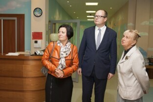 Prezydent Gdańska Paweł Adamowicz (w środku) i mecenas Marta Wośko (po prawej) ufundowali z prywatnych środków pompy infuzyjne dla Kliniki Pediatrii, Hematologii, Onkologii i Endokrynologii UCK w Gdańsku. Nz. po lewej Kierownik Kliniki prof. dr Elżbieta Adamkiewicz-Drożyńska