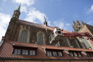 Akcja ewakuacji kaczki krzyżówki wraz z nowo narodzonymi kaczątkami z poddasza Kościoła Św. Trójcy w Gdańsku
