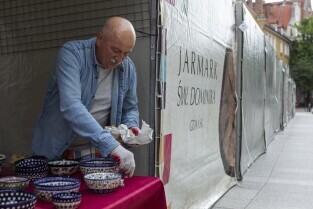 Gdańsk. Trwają ostatnie przygotowania do tegorocznej, 760 odsłony Jarmarku św.Dominika. NZ. Pan Henryk Chomicz z Bolesławca.