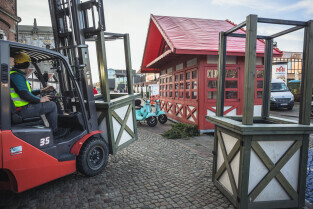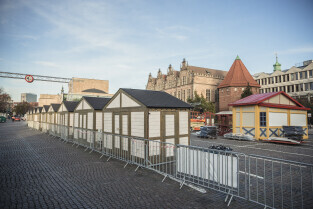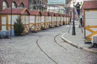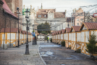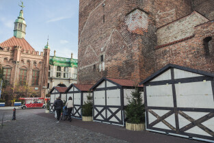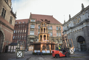 Gdańsk, ul. Targ Węglowy i okolice. Przygotowania do jarmarku bożonarodzeniowego