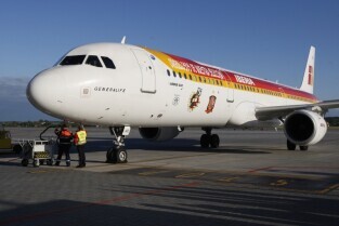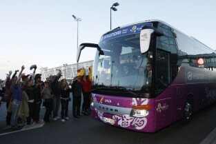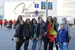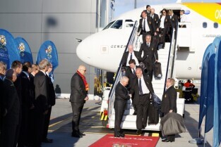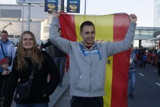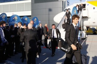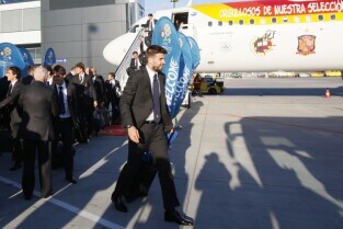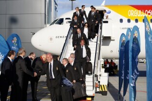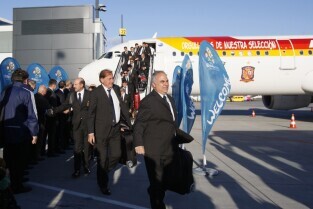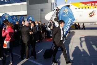 Gdańsk, Port Lotniczy im. Lecha Wałęsy. Przylot reprezentacji Hiszpanii w piłce nożnej na mistrzostwa UEFA Euro 2012 w Polsce.