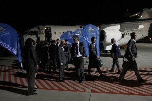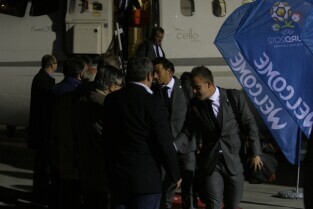 Gdańsk, Port Lotniczy im. Lecha Wałęsy. Przylot reprezentacji Irlandii w piłce nożnej na mistrzostwa UEFA Euro 2012 w Polsce. Reprezentację oficjalnie powitała delegacja z Prezydentami Gdańska Pawłem Adamowiczem i Sopotu Jackiem Karnowskim