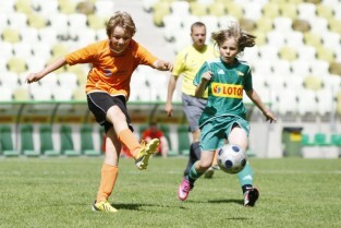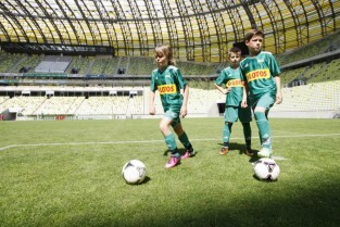 PGE Arena, Gdańsk Letnica. VII edycja turnieju piłkarskiego 12-latków woj. pomorskiego "Przystanek Euro 2013". Nz. rozgrzewka drużyny Gdańska