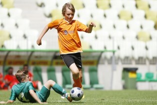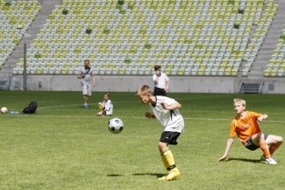 PGE Arena, Gdańsk Letnica. VII edycja turnieju piłkarskiego drużyn 12-latków z powiatów woj. pomorskiego "Przystanek Euro 2013". Nz. mecz półfinałowy Gdynia - Słupsk (8:0)