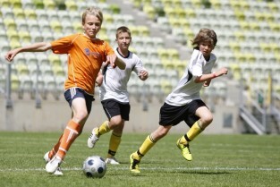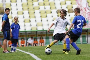 PGE Arena, Gdańsk Letnica. VII edycja turnieju piłkarskiego drużyn 12-latków z powiatów woj. pomorskiego "Przystanek Euro 2013". Nz. mecz półfinałowy Gdańsk - Sopot (4:2)