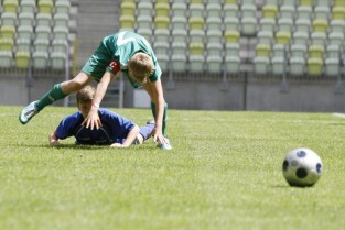 PGE Arena, Gdańsk Letnica. VII edycja turnieju piłkarskiego drużyn 12-latków z powiatów woj. pomorskiego "Przystanek Euro 2013". Nz. mecz o trzecie miejsce Słupsk - Sopot (1:3)