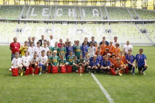 PGE Arena, Gdańsk Letnica. VII edycja turnieju piłkarskiego drużyn 12-latków z powiatów woj. pomorskiego "Przystanek Euro 2013". Nz. wspólne zdjęcie uczestników finałów