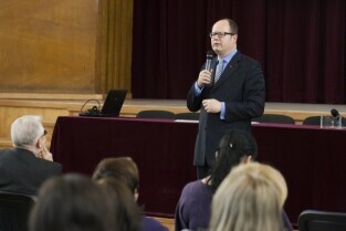 Konferencja "Z doświadczeń szkół niepublicznych. W poszukiwaniu nowych rozwiązań dla polskiej szkoły". Gdańsk, Centrum Kształcenia Zawodowego i Ustawicznego nr 1. Nz. Radny Miasta Gdańska Piotr Gierszewski
