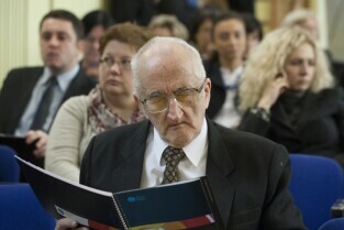 Konferencja "Z doświadczeń szkół niepublicznych. W poszukiwaniu nowych rozwiązań dla polskiej szkoły". Gdańsk, Centrum Kształcenia Zawodowego i Ustawicznego nr 1. Nz. Senator RP Edmund Wittbrodt