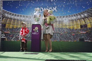 Trophy Tour - Puchar UEFA EURO 2012 odwiedza Gdańsk. Każdy z oglądających może zrobić sobie zdjęcie z pucharem.