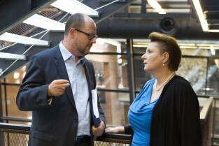 Gdańsk, Europejskie Centrum Solidarności. Spotkanie Rady Interesariuszy Młodego Miasta poświęcone "Studium wyboru ochrony konserwatorskiej terenów i obiektów postoczniowych w Gdańsku". Nz. Minister Kultury i Dziedzictwa Narodowego Małgorzata Omilanowska i Prezydent Gdańska Paweł Adamowicz