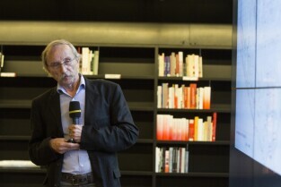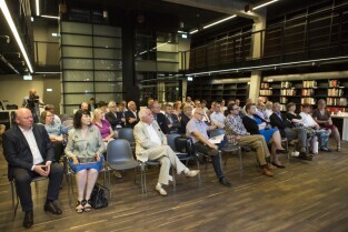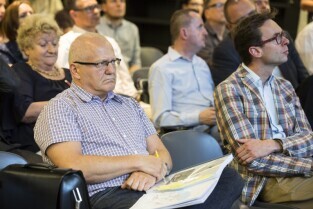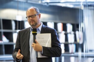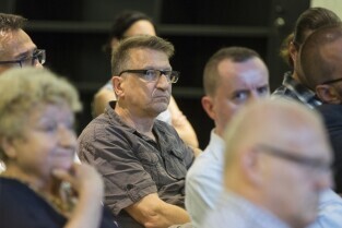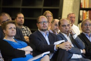 Gdańsk, Europejskie Centrum Solidarności. Spotkanie Rady Interesariuszy Młodego Miasta poświęcone "Studium wyboru ochrony konserwatorskiej terenów i obiektów postoczniowych w Gdańsku". Nz. Grzegorz Klaman
