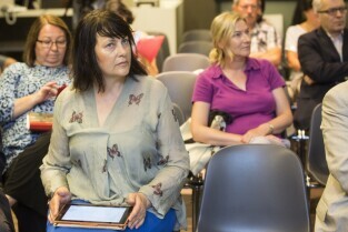 Gdańsk, Europejskie Centrum Solidarności. Spotkanie Rady Interesariuszy Młodego Miasta poświęcone "Studium wyboru ochrony konserwatorskiej terenów i obiektów postoczniowych w Gdańsku". Nz. Aneta Szyłak