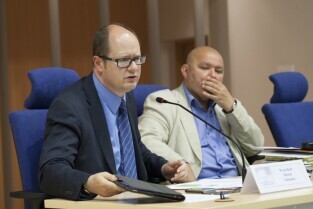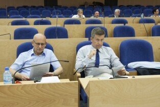 Urząd Marszałkowski Woj. Pomorskiego w Gdańsku. Posiedzenie Rady Metropolitalnej Zatoki Gdańskiej. Nz. Starosta Powiatu Wejherowskiego Józef Reszke i Wiceprezydent Miasta Sopotu Bartosz Piotrusiewicz (po prawej)
