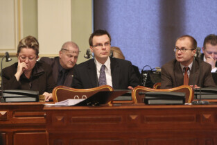 Styczniowe posiedzenie Rady Miasta Gdańska. Nz. od lewej: Ewa Kamińska, Wiesław Bielawski, Marcin Szpak, Maciej Lisicki