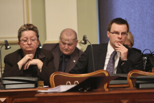 Styczniowe posiedzenie Rady Miasta Gdańska. Nz. od lewej: Ewa Kamińska, Wiesław Bielawski, Marcin Szpak