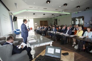 Inauguracje posiedzenie Rady Programowej Obszaru Metropolitalnego Gdańsk-Gdynia-Sopot. Gdańsk, Olivia Business Centre. Nz. Prezes Zarządu Instytutu Badań nad Gospodarką Rynkową Jan Szomburg