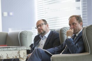 Inauguracje posiedzenie Rady Programowej Obszaru Metropolitalnego Gdańsk-Gdynia-Sopot. Gdańsk, Olivia Business Centre. Nz. Z-ca Prezydent Gdańska Andrzej Bojanowski i Prezes InvestGDA Alan Aleksandrowicz