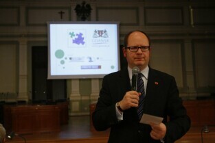 I Gdańskie Forum Rad Szkół i Rad Rodziców. Gdańsk, Nowy Ratusz. Nz. Prezydent Gdańska Paweł Adamowicz