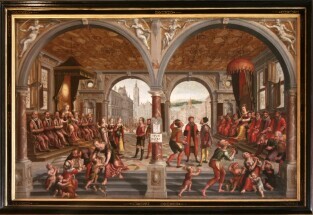 Obraz „Pobożność” z cyklu malowideł „Cnoty obywatelskie” pędzla artysty niderlandzkiego Hansa Vredemana de Vries zdobi Wielką Salę Rady, zwaną Salą Czerwoną.