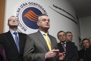 Regionalna Izba Gospodarcza Pomorza - otwarcie siedziby przy ul. Dyrekcyjnej. Nz. od lewej: Janusz Baran (prezes RIGP), Paweł Adamowicz (Prezydent Gdańska), Jan Kozłowski (Marszałek Pomorski)