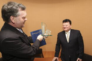 Regionalna Izba Gospodarcza Pomorza - otwarcie siedziby przy ul. Dyrekcyjnej. Nz. od lewej: Paweł Adamowicz (Prezydent Gdańska), Jan Kozlowski (Marszałek Pomorski)