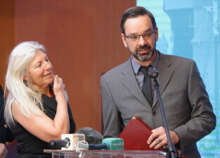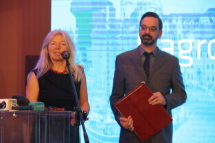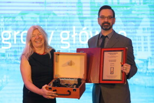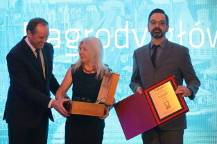 Gdańsk. Gala wręczenia nagród Rejs Roku 2017-Srebrny Sekstant. Nz. Srebrnym Sekstantem i Nagrodą Honorową Rejs Roku 2017 uhonorowano Kapitan Joannę Pajkowską wspólnie z Uwe Rottgeringiem.