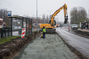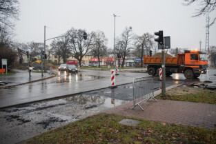 Gdańsk. Remont ul. Chłopskiej. Skrzyżowanie z ul. Piastowska