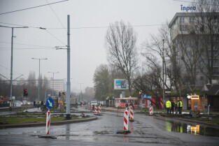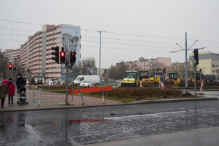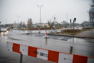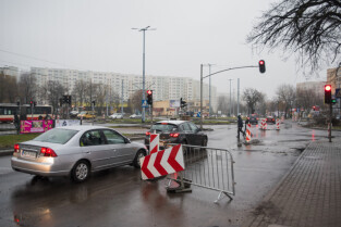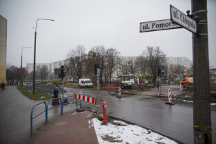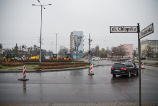 Gdańsk. Remont ul. Chłopskiej. Skrzyżowanie z ul. Pomorska
