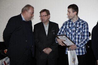 Głównymi gośćmi wydarzenia byli sponsorzy i partnerzy klubu, którzy uhonorowani zostali podziękowaniami za wsparcie i swój wkład w rozwój gdańskiego żużla. Nz. od prawej Robert Terlecki Prezes GKS Wybrzeże oraz Tadeusz Zdunek Prezes Stowarzyszenia GKŻ Wybrzeże