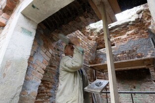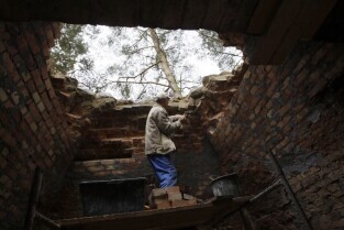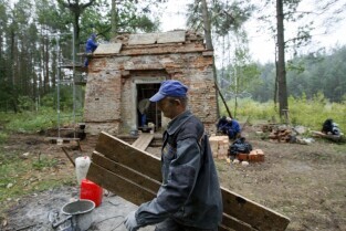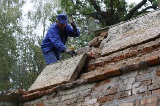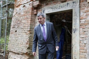 Sulmin, gm. Kolbudy. Renowacja na zlecenie gmin Gdańsk i Żukowo XIX wiecznego grobowca zasłużonej dla Gdańska rodziny Gralathów wraz z otaczającym go cmentarzem. Nz. Zastępca Burmistrza Gminy Żukowa Marek Trepczyk