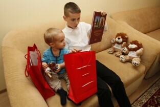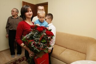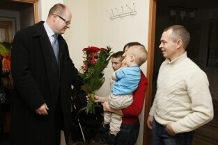 Spotkanie Prezydenta Gdańska Pawła Adamowicza z kolejnymi repatriantami, którzy zamieszkali w Gdańsku. Rodzinę tworzą Julia Nowosielecka i jej mąż Aleksey Byczkow, oraz dzieci Dymitr i Wiaczesław Nowosieleccy. Julia Nowosielecka jest potomkiem zesłańców deportowanych do Kazachstanu.