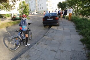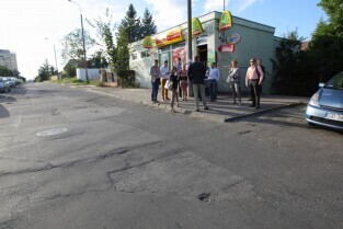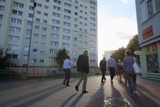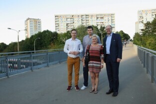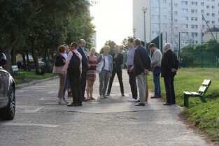 Gdańsk. Robocza wizyta Prezydenta Pawła Adamowicza i Urzędników na Suchaninie. Nz Pomysłodawcy i kandydaci do powstającej Rady dzielnicy Suchanino (L) Juliusz Grabowski, Szymon Mazurkiewicz, Ewa Okuniewska i Prezydent Gdańska Paweł Adamowicz.