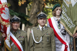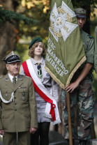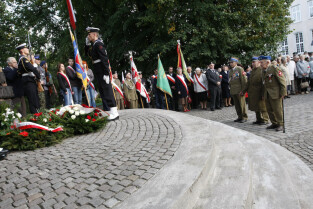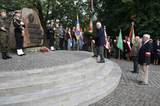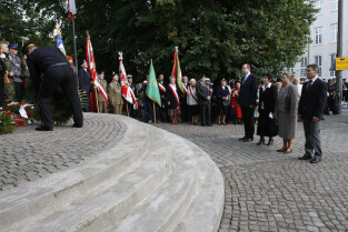 Rocznica Powstania Polskiego Państwa Podziemne i Szarych Szeregów. Gdańsk, Targ Rakowy, pomnik Polskiego Państwa Podziemnego.