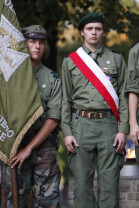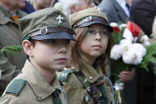 Rocznica Powstania Polskiego Państwa Podziemne i Szarych Szeregów. Gdańsk, Targ Rakowy, pomnik Polskiego Państwa Podziemnego. Nz. harcerze
