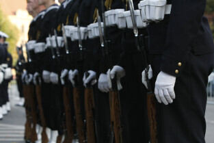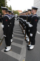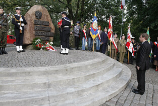 Rocznica Powstania Polskiego Państwa Podziemne i Szarych Szeregów. Gdańsk, Targ Rakowy, pomnik Polskiego Państwa Podziemnego. Nz. Kompania Reprezentacyjna Marynarki Wojennej