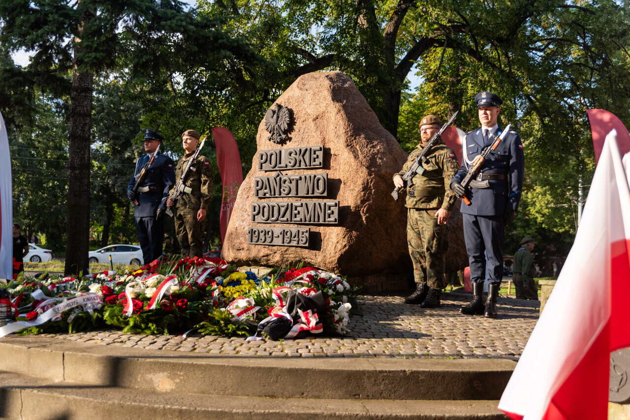 Gdańsk, Targ Rakowy. Obchody 81. rocznicy wybuchu powstania warszawskiego odbyły się na Targu Rakowym, przy pomniku Polskiego Państwa Podziemnego i Armii Krajowej.
