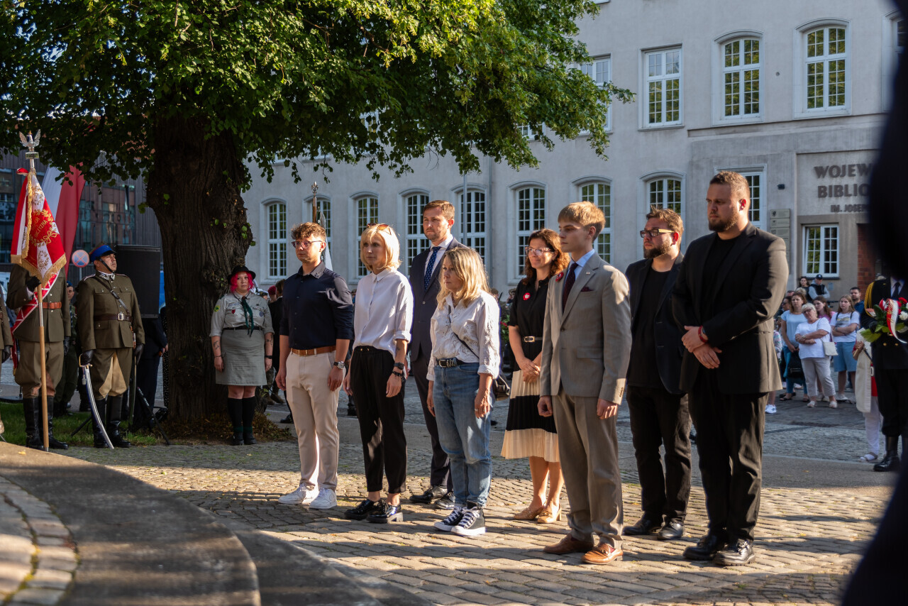 Gdańsk, Targ Rakowy. Obchody 81. rocznicy wybuchu powstania warszawskiego odbyły się na Targu Rakowym, przy pomniku Polskiego Państwa Podziemnego i Armii Krajowej.
