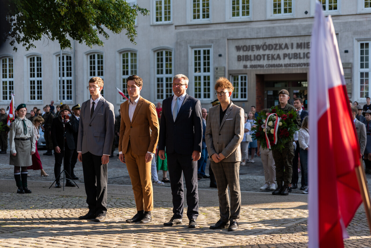 Gdańsk, Targ Rakowy. Obchody 81. rocznicy wybuchu powstania warszawskiego odbyły się na Targu Rakowym, przy pomniku Polskiego Państwa Podziemnego i Armii Krajowej.