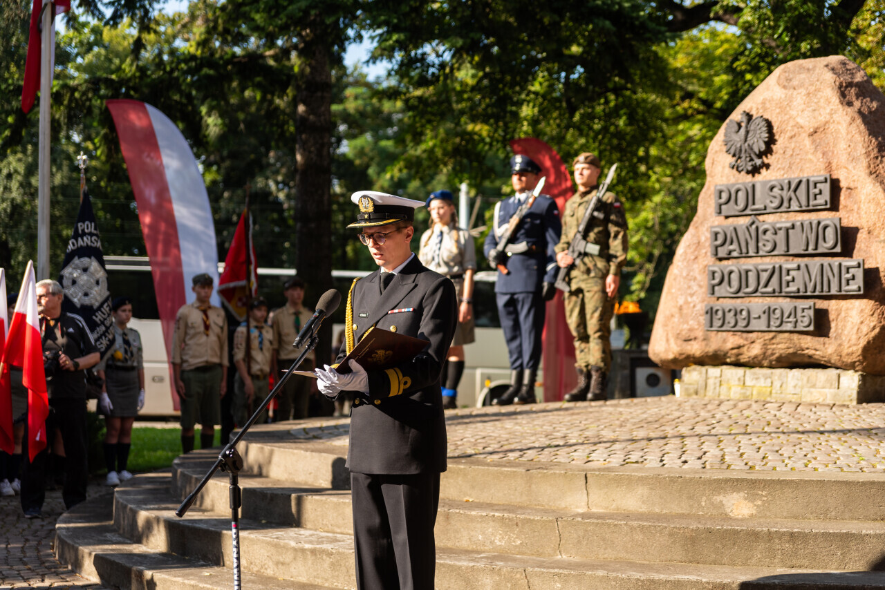 Gdańsk, Targ Rakowy. Obchody 81. rocznicy wybuchu powstania warszawskiego odbyły się na Targu Rakowym, przy pomniku Polskiego Państwa Podziemnego i Armii Krajowej.