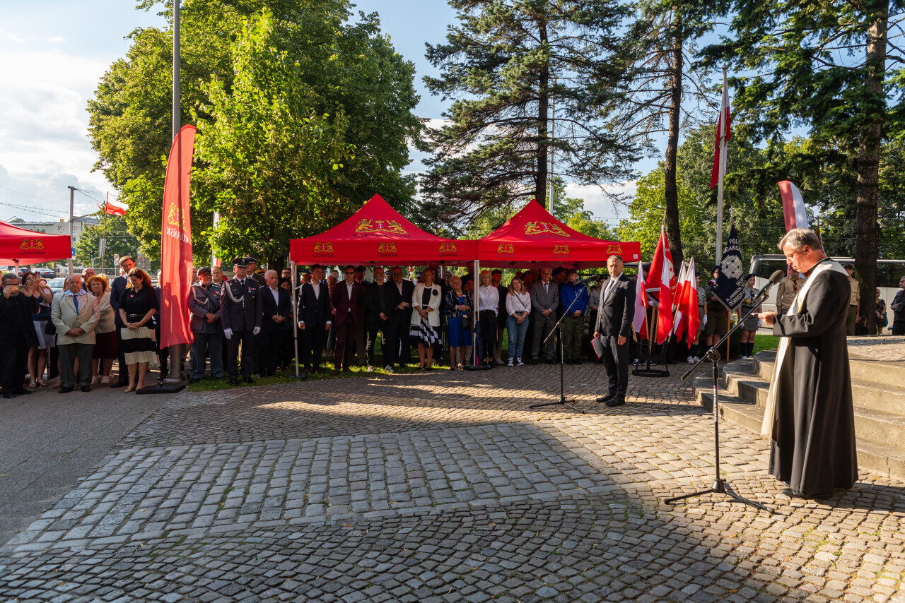 Gdańsk, Targ Rakowy. Obchody 81. rocznicy wybuchu powstania warszawskiego odbyły się na Targu Rakowym, przy pomniku Polskiego Państwa Podziemnego i Armii Krajowej.
